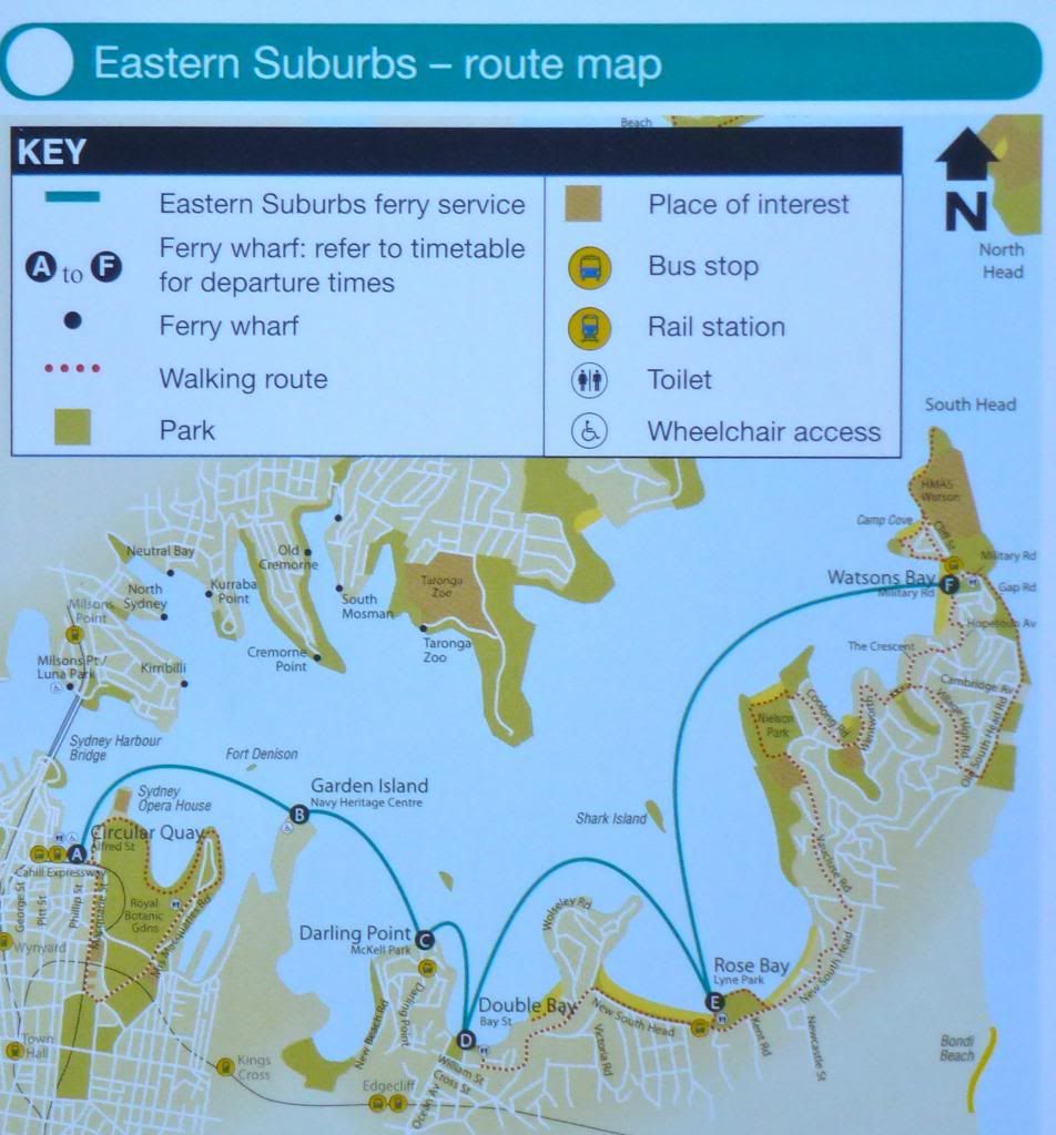 The Eastern Suburbs Ferry goes also at 30 minutes intervals most of the time and the return trip takes 1 hour.